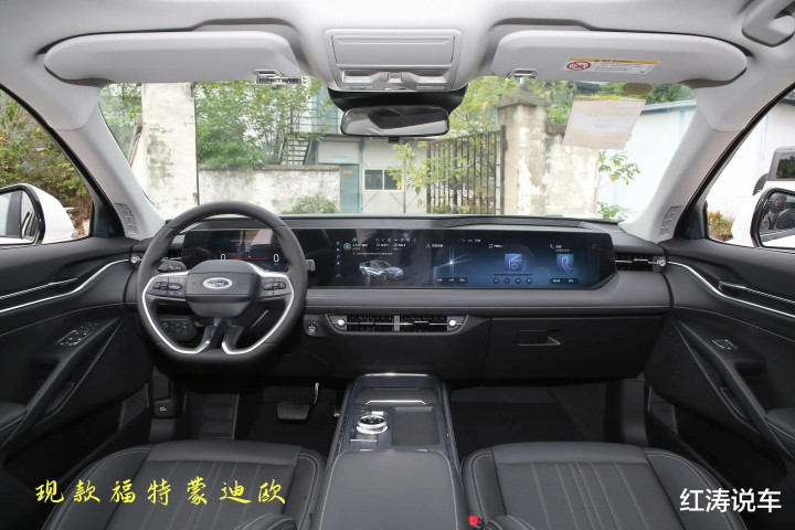 内饰方面,新款蒙迪欧中控台布局和现款车型是一样的,配备12.3英寸液晶仪表和27英寸中控屏组成了贯穿样式的大屏,从相关渠道获悉,新款有望升级为高通骁龙8155芯片,用以满足更为流畅的车机使用场景,支持联网、OTA升级、手机APP远程控制、语音识别控制等,继续采用电子旋钮换挡机构,但副仪表台的前端改成了类似悬浮岛的造型,还加入了手机无线充电面板。